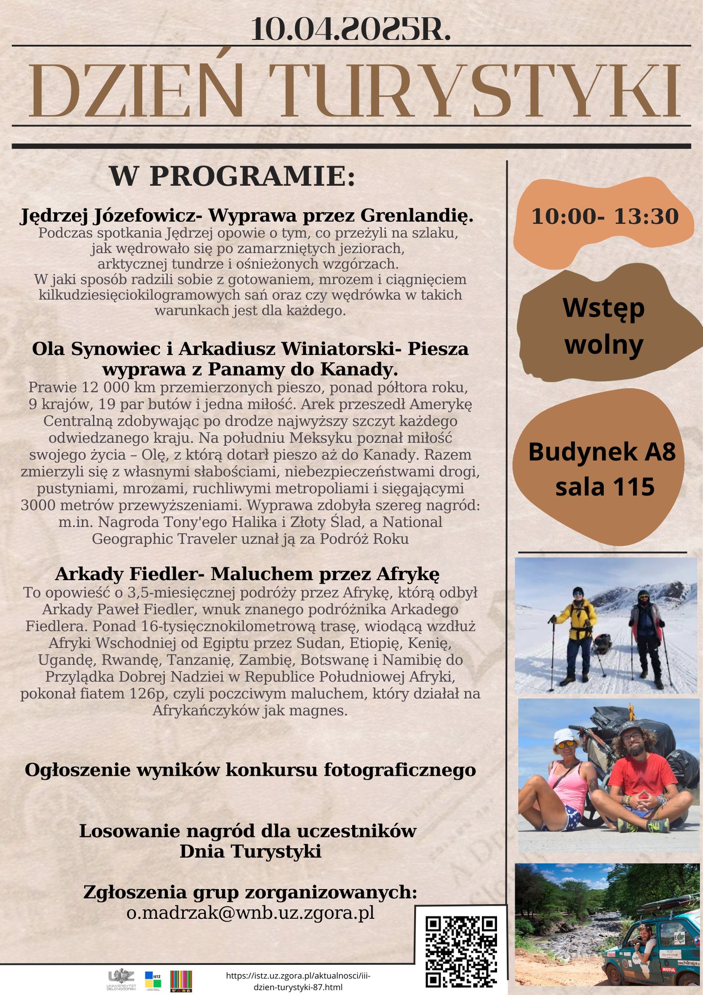 Już 10 kwietnia (czwartek) w godzinach 10:00–13:30 na Uniwersytecie Zielonogórskim odbędzie się III Dzień Turystyki. Wydarzenie, organizowane przez Katedrę Turystyki i Rekreacji oraz studentów I roku kierunku Turystyka i Rekreacja, odbędzie się pod hasłem „Życie to podróż”.